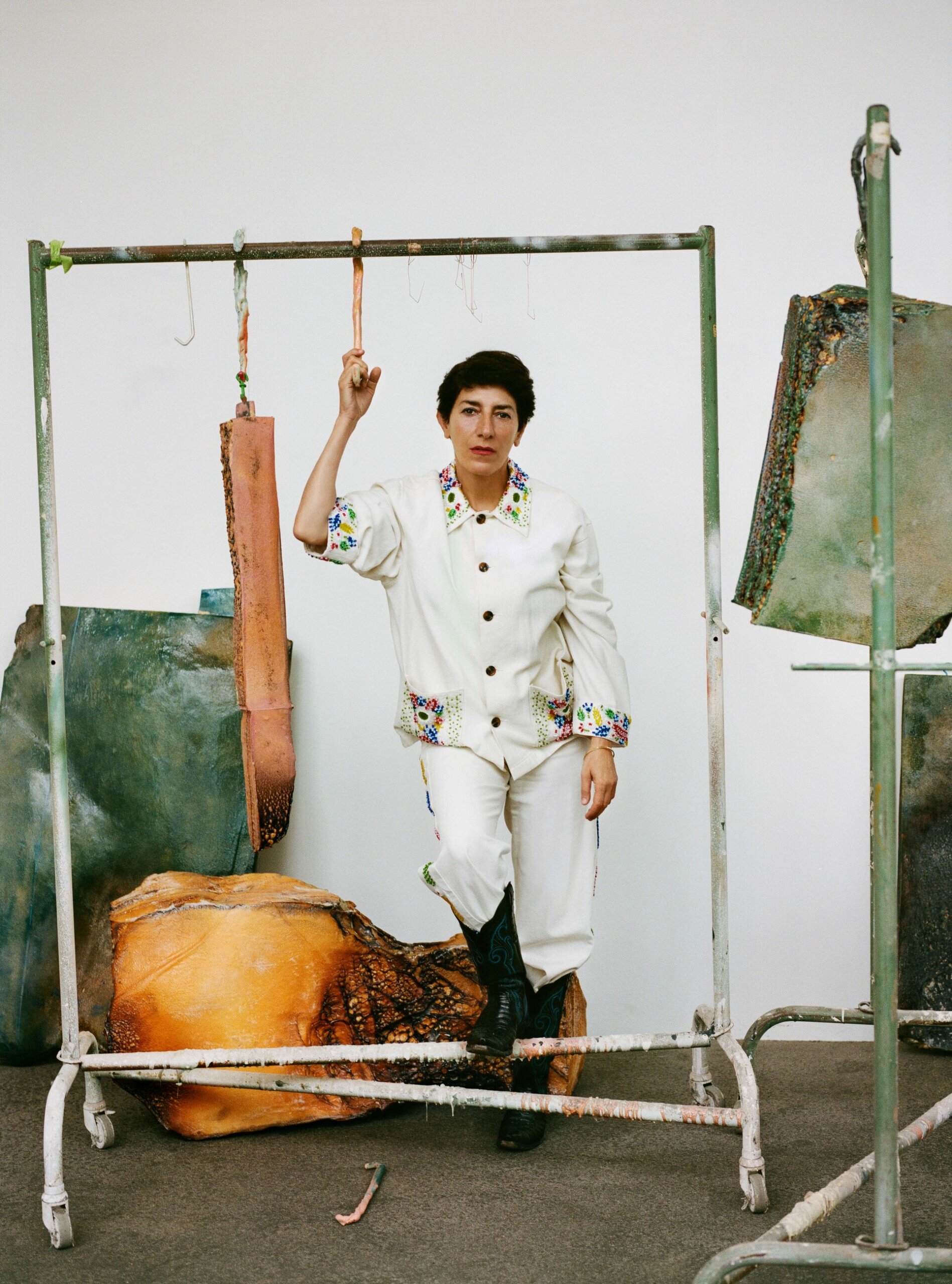 Nairy Baghramian explores inherited forms and concepts from the history of art in order to address issues of functionality, decoration, abstraction and feminism. Her sculptures, made from a wide range of materials including steel, silicon, resin and leather, bring art historical references into the realm of the subjective; they are dismantled and recombined with human physiology and the principles of interior design. The result offers a re-reading of the legacy of Minimalism and Surrealism in the shape of protuberances and cavities, lumps and spills, organs and body parts.