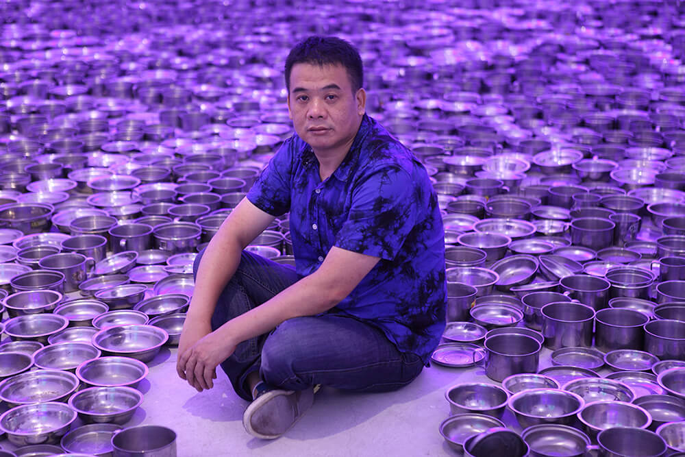 Graduated from the Fine Arts Department in South China Normal University, Guangzhou, Li works primarily with sculpture and installation, altering and reworking existing objects and materials accrued in a region renowned as the industrial hub in the Pearl River Delta.