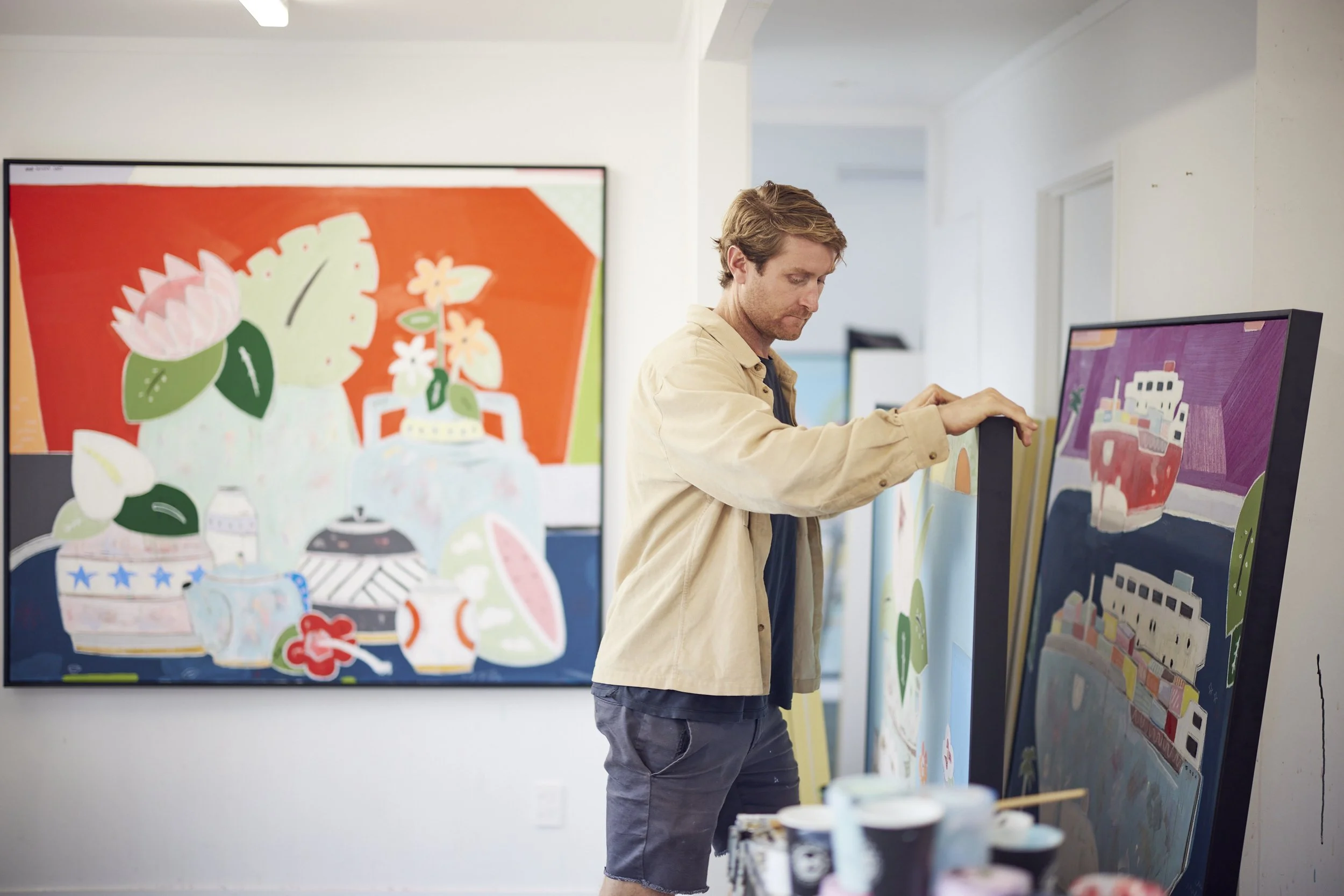 Living in Auckland, New Zealand, Rob Tucker (b.1987) has established himself as a unique presence in the art world with his interpretations of still lifes, of architecture and figurative landscapes. Its artistic expression is marked by geometric shapes, clean forms and a vivid color palette.