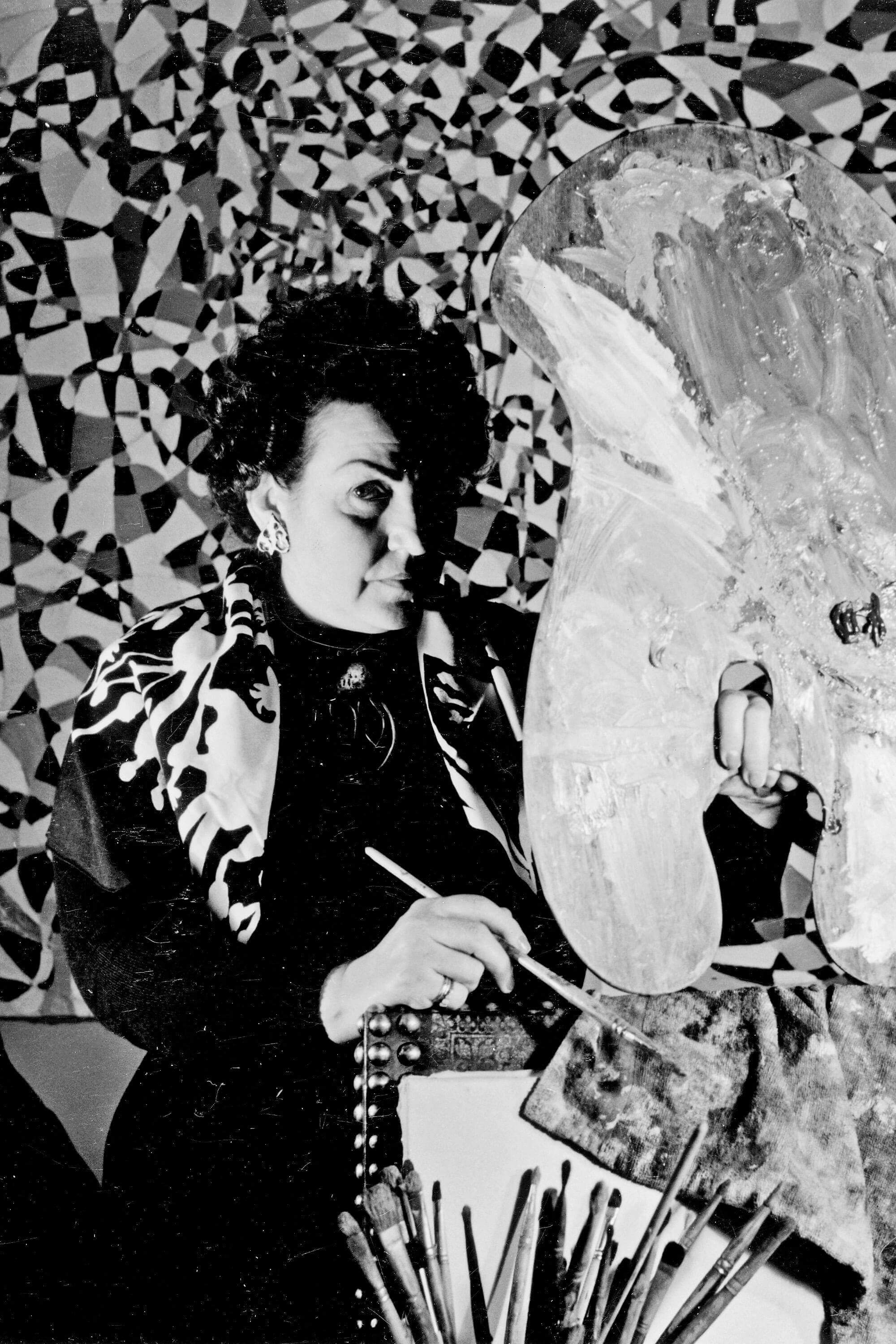 Fahrelnissa Zeid was a Turkish artist best known for her large-scale abstract paintings. Although predominantly a painter, she also made drawings, lithographs, and sculptures. Her work blended elements of Islamic and Byzantine art with abstraction and other influences from the West. She married into the Hashemite royal family of Iraq. She was the mother of Prince Ra’ad bin Zeid and the grandmother of Prince Zeid bin Ra’ad.